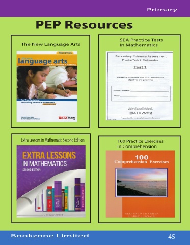 Primary PEP Resources SEA Practice Tests The New Language Arts In Mathematics Extra Lessons in Mathematic Second Edition 100 Practice Exercises in Comprehension Bookzone Limited 45